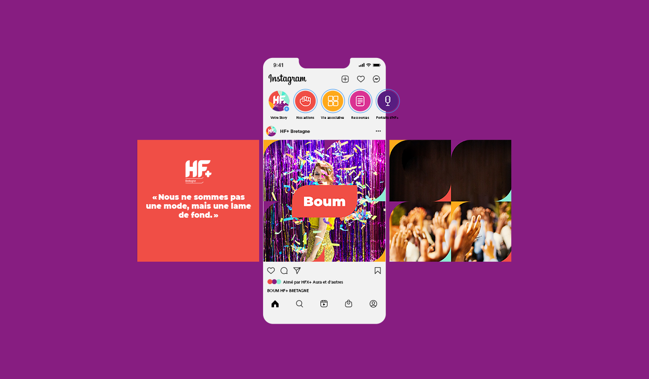 Nouvelle identité pour l’association HF+ Bretagne à partir du logotype existant. Un travail graphique accompagné par le travail web de David Daumer pour leur nouveau site internet.